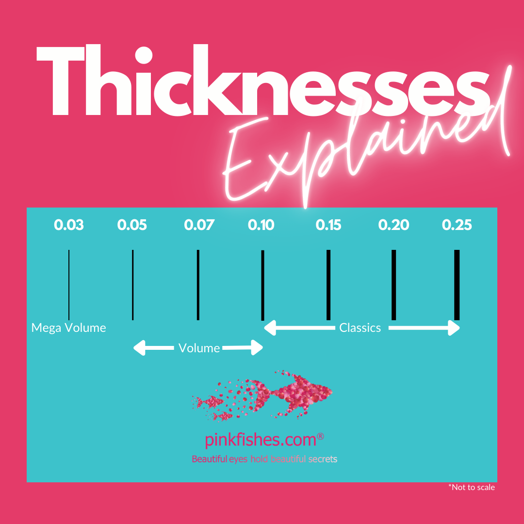 Pinkfishes Classic individual lashes are used for a 1:1 application method, whereby one lash extension is applied to each natural lash.