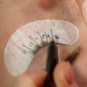 Apply your chosen eye pads or tape to your client's under eye as you usually would for a lash appointment. Then, using the Lash Mapping Pen, draw your chosen lash map directly onto the eye pad or tape, making sure not to get any on the skin. Mark out your sections and lengths using the fine tip pen, to customise each set to your client's desired look. Follow the map as a guide when completing the set of extensions to maintain symmetry and consistency. Once complete, remove the eye pads or tape as normal - the markings will remain on the eye pad or tape, keeping the client’s skin completely untouched.